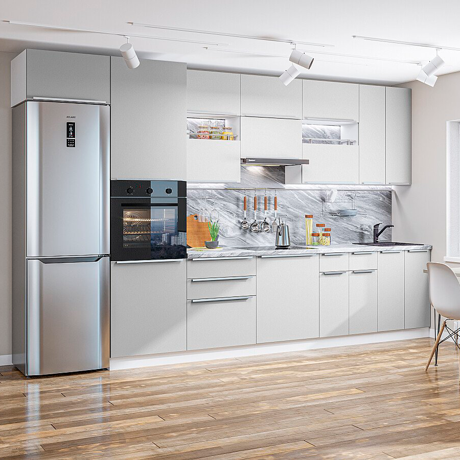 Кухонный гарнитур Фьюжн-01 в цвете Silky Light Grey от Vivat — это воплощение современного стиля и элегантности. Он станет ярким акцентом в вашем интерьере, добавив в него ощущение свежести и лёгкости.