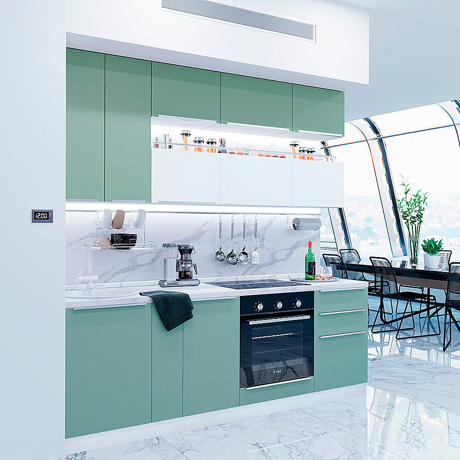 Кухонный гарнитур Фьюжн-01 от Vivat в цвете Silky Mint/Silky White — это воплощение современного стиля и элегантности. Он станет настоящим украшением вашей кухни, придав ей неповторимый облик.