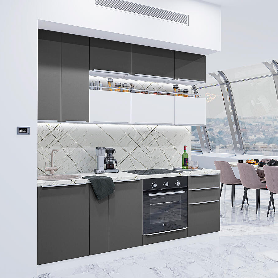 Кухонный гарнитур Фьюжн-01 в цвете Gallant/Angel от Vivat — это яркий представитель современного дизайна, который станет украшением вашей кухни. Оригинальный и стильный внешний вид привлекает внимание и дарит ощущение уюта.